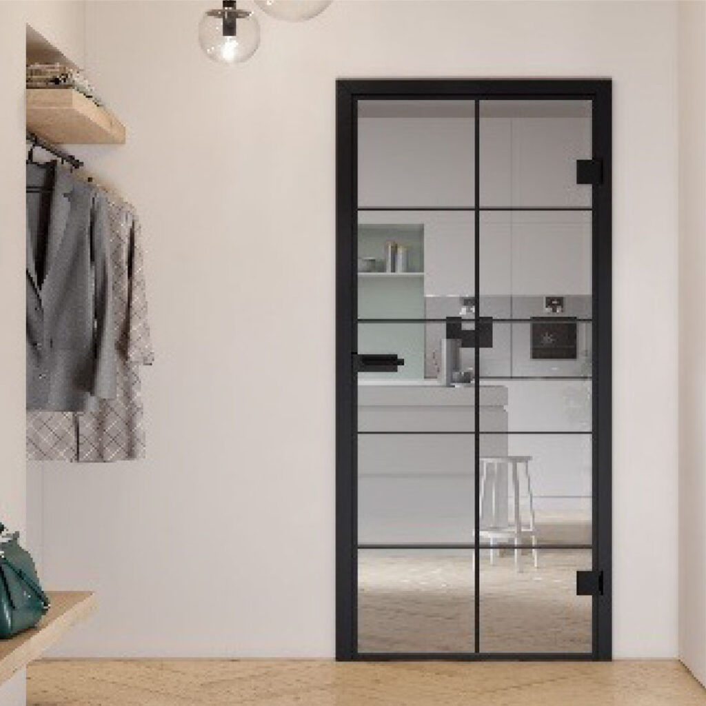 Modernes Loft-Design: Die Tür besticht durch ihr zeitgemäßes Loft-Design mit schwarzen Designelementen, die an industrielle Fenster erinnern und somit einen urbanen Charakter in Ihre Räume bringen.