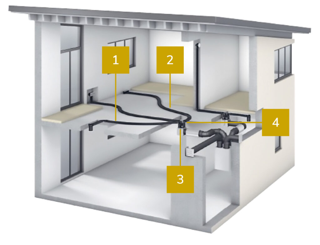 Zentrales Wohnungslüftungs-System mit Wärme und Feuchterückgewinnung