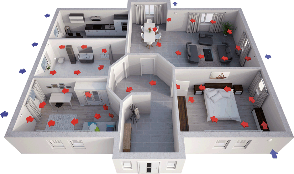 Ständige Frischluftzufuhr und Feuchtigkeitsregulierung für ein angenehmes Wohnklima.